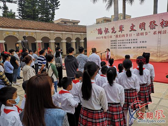 當日上午,黨員干部、志愿者和學生們還前往翔安大嶝革命烈士陵園開展祭掃活動。