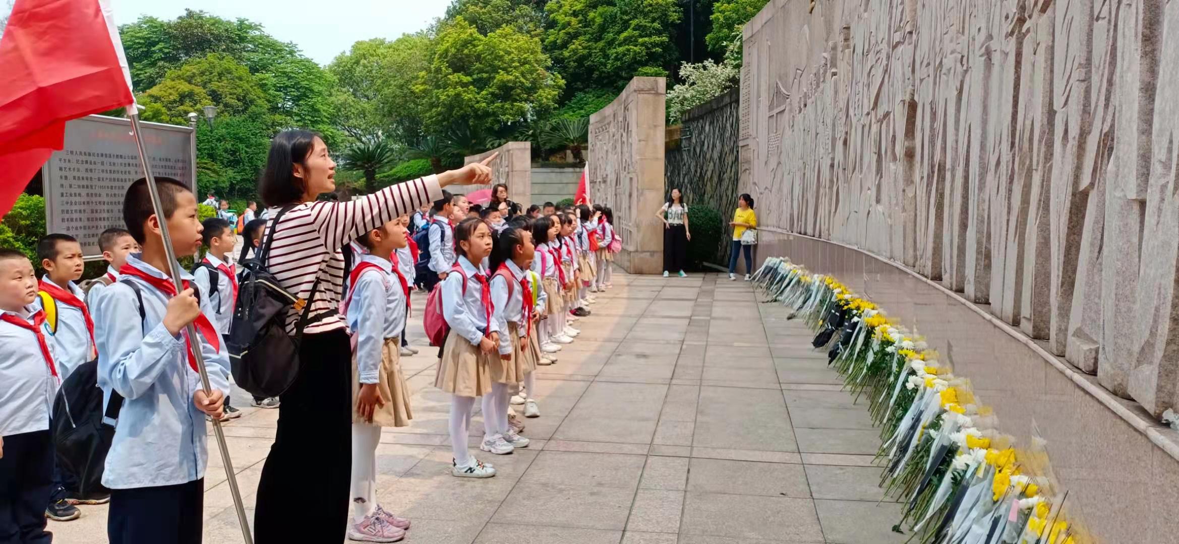 三明市陳景潤(rùn)實(shí)驗(yàn)小學(xué)的學(xué)生們聆聽老師講述革命烈士的故事 三元區(qū)委文明辦供圖