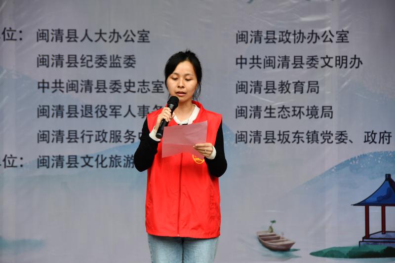 坂東鎮(zhèn)志愿者代表為大家朗讀了“踐行移風(fēng)易俗·弘揚文明新風(fēng)”倡議書 閩清縣委文明辦供圖