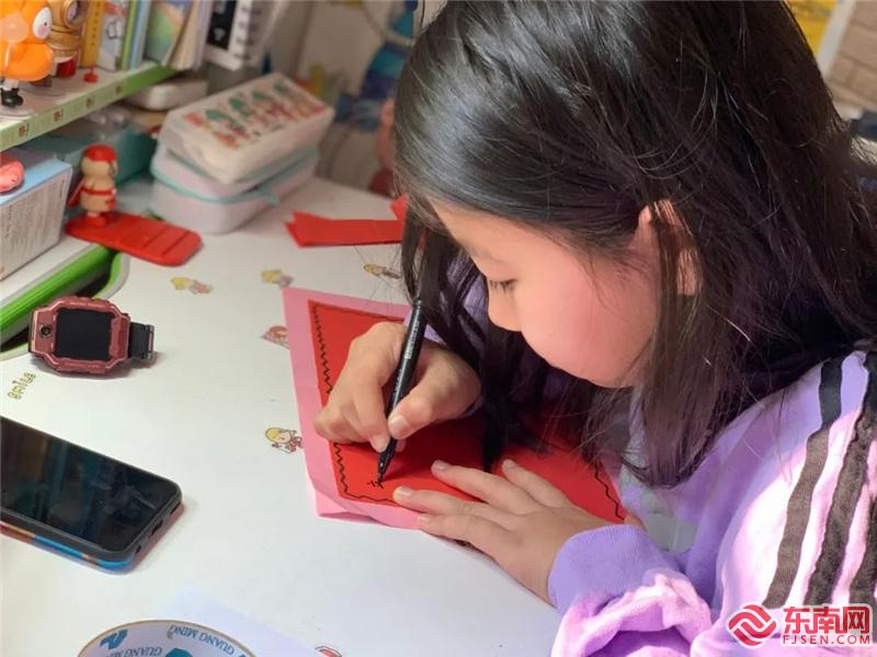 小志愿者們動手為老人們制作生日賀卡。前浦南社區(qū)供圖