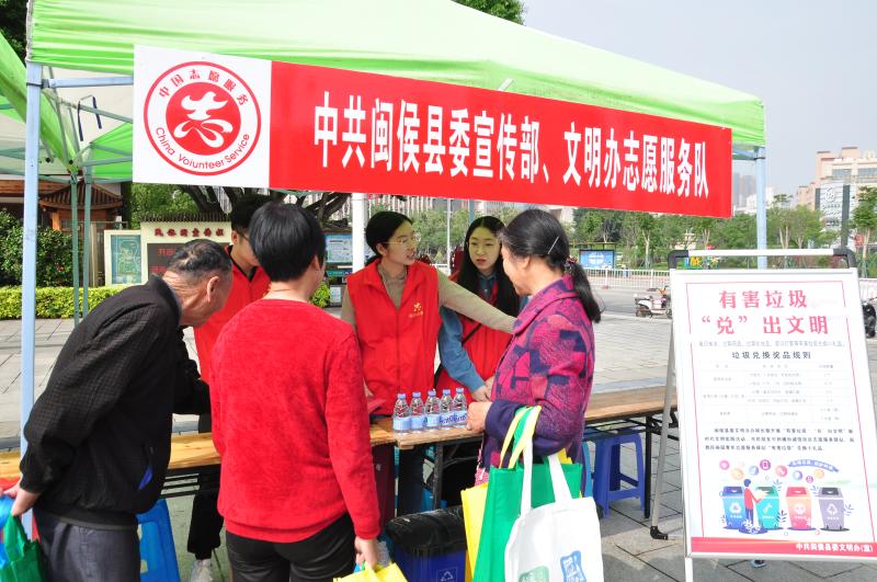 縣委宣傳部、縣文明辦志愿者在宣傳有害垃圾的種類 閩侯文明辦供稿