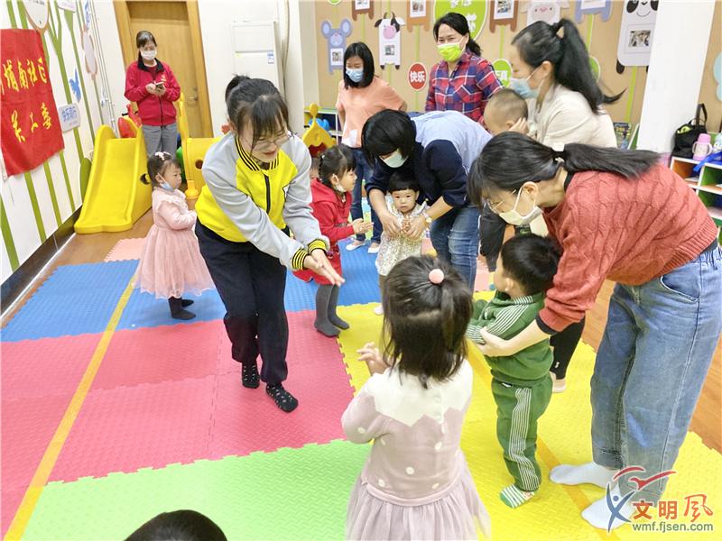 前埔南社區(qū)“家庭親子苑”親子早教課堂,親子互動“小魚游游游”游戲。前埔南社區(qū)供圖