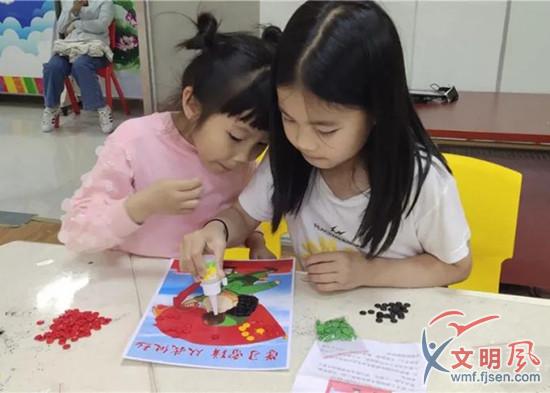 孩子們在完成紐扣拼圖《學習雷鋒,從我做起》(翔安區(qū)委文明辦供圖)