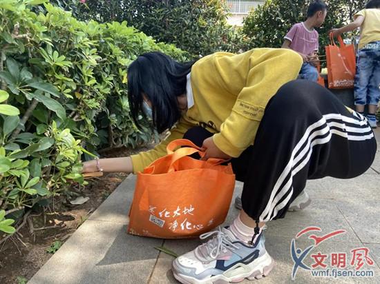 孩子在認真地撿拾垃圾(翔安區(qū)委文明辦供圖)