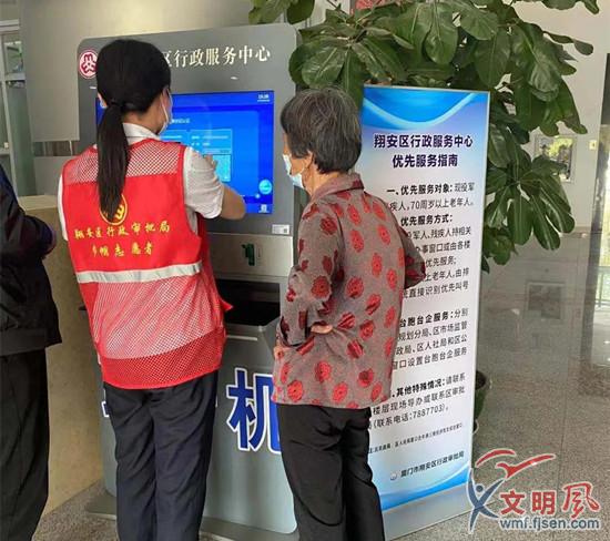 不僅如此,翔安區(qū)還打造“普通話+閩南語(yǔ)”雙語(yǔ)播報(bào)、雙屏引導(dǎo)的“翔政通”自助終端,并安排導(dǎo)辦人員指導(dǎo)自助設(shè)備操作,為有需要的老年人提供全程操作幫忙。
