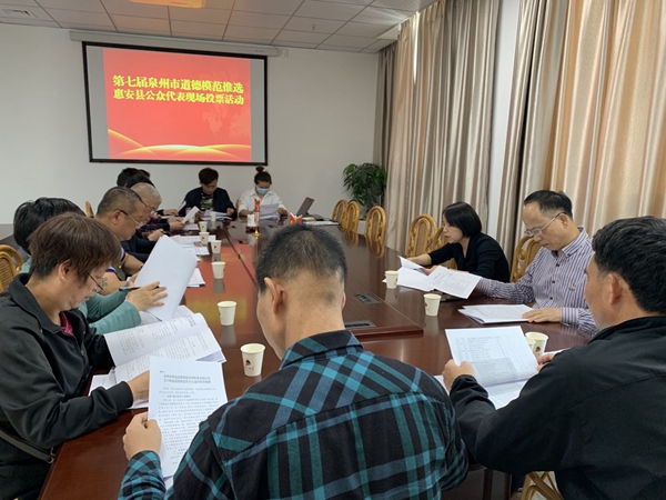為選樹一批事跡突出、具有鮮明時代特征、典型示范性強的道德模范,以思想道德建設的新進展新成就慶祝黨的百年華誕,4月20日下午,惠安縣委文明辦組織開展公眾代表投票活動,推選第七屆泉州市道德模范暨第七屆福建省道德模范。
