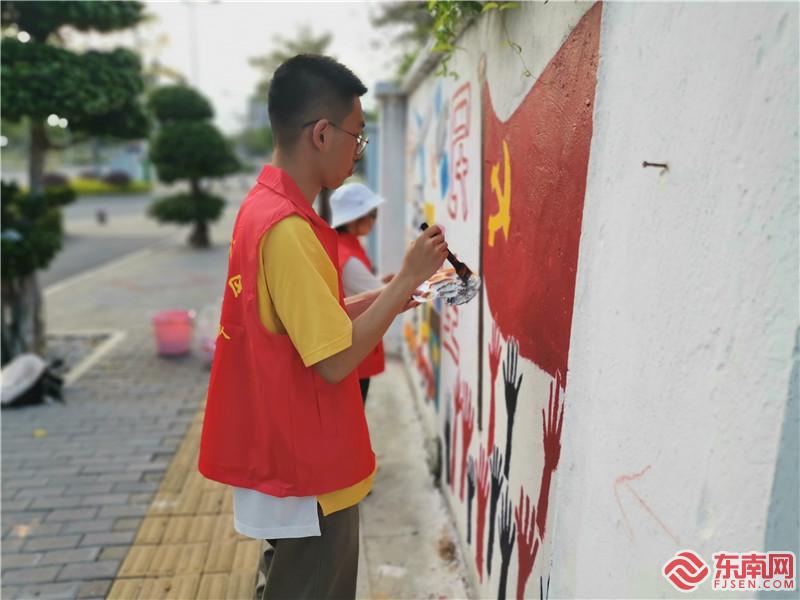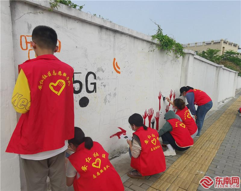 原來,這是安仁社區(qū)新時代文明實踐站攜手廈門醫(yī)學院墨誼書畫協(xié)會繪制的社區(qū)文化墻,活動從3月底開始策劃、繪制,歷時10余天完成。