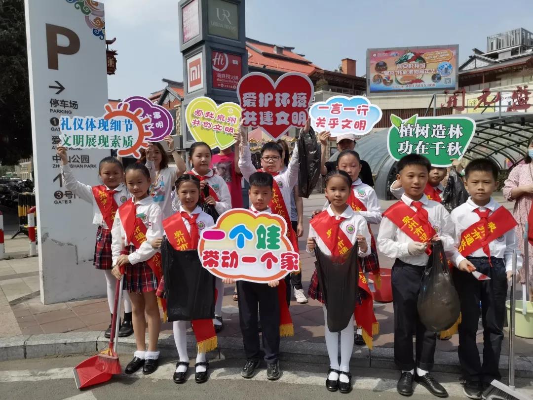 泉州市通政中心小學開展“一個娃帶動一個家,家家為古城添光彩”系列活動 學生上街宣傳 通政中心小學供圖
