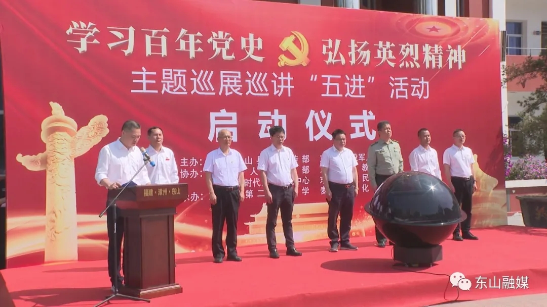 郭少聰在儀式上致辭,他指出,此次主題巡展將為東山縣黨員干部、駐島官兵、在校師生、社區(qū)群眾提供一次難得的黨史學習機會。各有關部門要倍加珍惜這一難得機遇,高度重視,周密安排,精心組織廣大干部群眾和青少年參觀學習,在全社會營造崇尚英雄、致敬英烈的濃厚氛圍。希望全縣各級各部門以本次活動為契機,創(chuàng)新豐富黨史學習教育的載體和內容,為落實全方位高質量發(fā)展超越、建設“生態(tài)旅游島·富美新東山”凝聚力量。