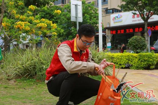 志愿者在認真地撿拾垃圾(翔安區(qū)委文明辦供圖)