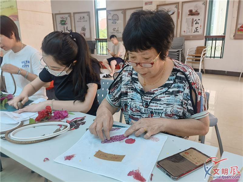 植物敲拓染的方式詮釋了每一瓣花、一片葉子的“特殊性”,正如愛(ài)有很多種形態(tài),質(zhì)樸的母愛(ài)卻是最無(wú)可比擬的。簡(jiǎn)單純粹的素材,愉悅身心的手作,讓媽媽們?cè)谕厝净顒?dòng)中近距離感受傳統(tǒng)文化的魅力。社區(qū)相關(guān)負(fù)責(zé)人表示,希望通過(guò)活動(dòng),豐富精神文化生活,體驗(yàn)近鄰互動(dòng)的樂(lè)趣,感受“南”兜大家庭的溫暖與關(guān)懷,提升對(duì)社區(qū)認(rèn)同感和歸屬感。