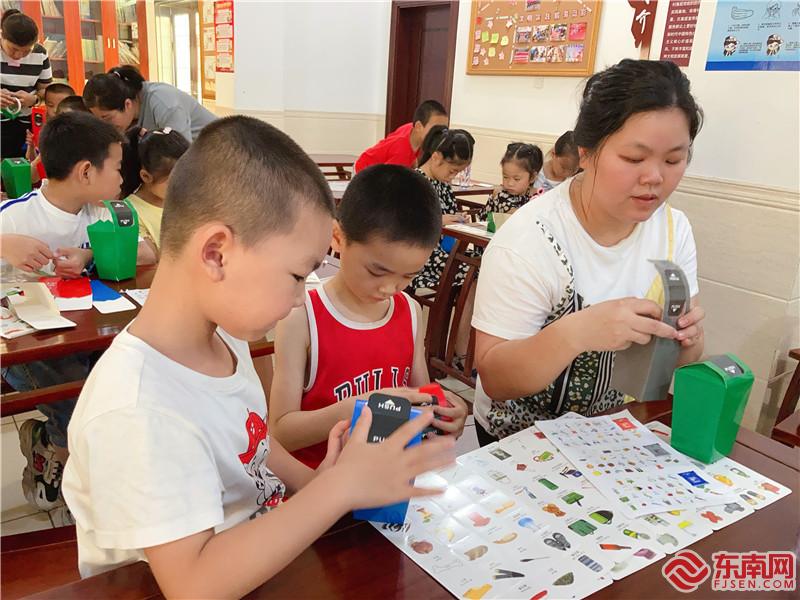 親子家庭制作“垃圾分類桶”(田頭村新時代文明實踐站供圖)