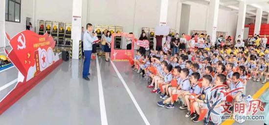迎著飄揚的五星紅旗,小朋友沿著“紅色宣傳長廊”,聽消防員叔叔講述著與臺風莫蘭蒂勇敢斗爭的故事。隨后,小朋友在老師的帶領下參觀消防員宿舍、體驗消防裝備,稚嫩的臉上洋溢著幸福與滿足。