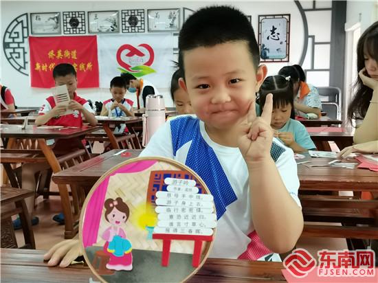 小朋友制作孝廉文化主題貼畫和剪紙(張妍娜 攝)