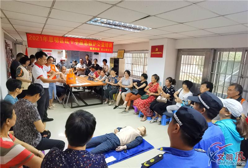 文明風(fēng)5月27日訊(記者 盧超穎 通訊員 鄧琳姍)為進一步提升社區(qū)居民的應(yīng)急技能和自救互救能力,弘揚人道博愛奉獻的紅十字精神和志愿服務(wù)精神。2021年5月25日上午,思明區(qū)蓮前街道龍山橋社區(qū)、計生協(xié)會聯(lián)合思明區(qū)城市管理局東坪山中隊黨支部邀請思明區(qū)紅十字會在龍山橋社區(qū)新時代文明實踐站為社區(qū)居民開展應(yīng)急救護公益培訓(xùn)。