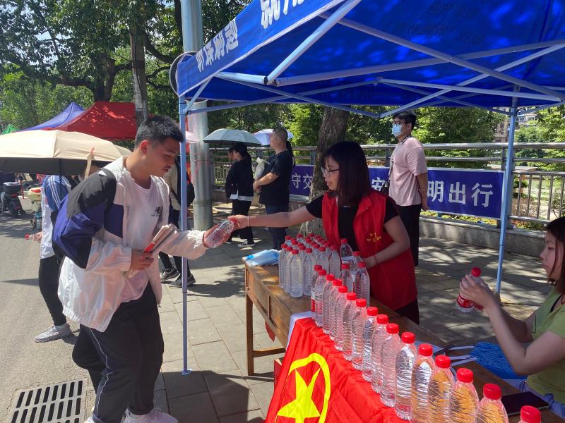 建陽團(tuán)區(qū)委組織開展12355助力高考志愿服務(wù)活動,為考點(diǎn)附近為廣大高考學(xué)子、考生家長及陪考工作人員設(shè)立“高考加油站”,免費(fèi)提供飲用水、應(yīng)急考試用具、防暑藥品等物品,在炎炎夏日為考生送去一份關(guān)懷,為等待的老師和家長們撐起一片清涼與希望,愛心助考,為夢護(hù)航。據(jù)工作人員介紹,截至8日早晨,已經(jīng)有432名考生和家長在愛心服務(wù)站處領(lǐng)取礦泉水。