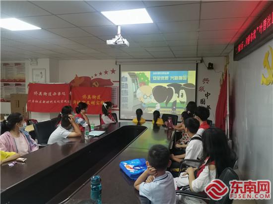 社區(qū)青少年觀看文明出行相關(guān)視頻并分享心得(方阿云 攝)