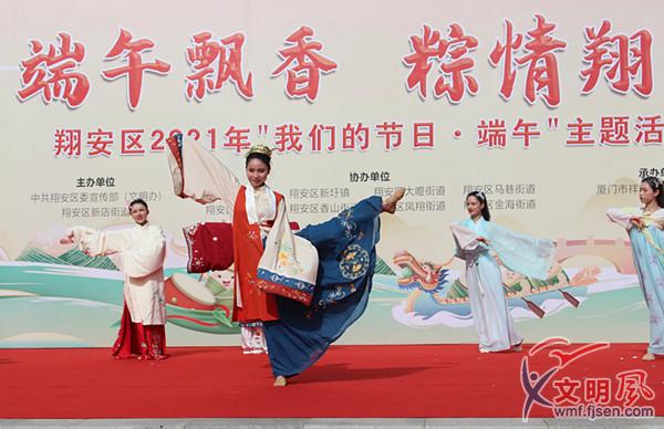 伴隨著歡慶的鼓聲,開場(chǎng)節(jié)目表演《喜慶大鼓》為活動(dòng)增添了熱鬧的氣氛。整場(chǎng)演出緊扣優(yōu)秀傳統(tǒng)文化主題,帶來了漢服舞蹈表演《禮儀之邦》、歌曲演唱《祖國(guó)你好》、舞蹈《翔安!你的名字很親》《好運(yùn)來》等節(jié)目,呈現(xiàn)了“古典風(fēng)”與“新時(shí)代”的巧妙融合。
