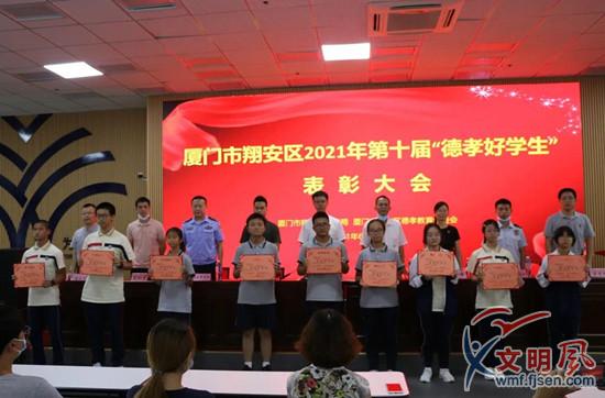文明風(fēng)6月22日訊(夏菁 童心悅)近日,2021年度翔安區(qū)第十屆“德孝好學(xué)生”表彰大會(huì)在廈門市翔安區(qū)進(jìn)修學(xué)校舉行,共有103名學(xué)子受到表彰。