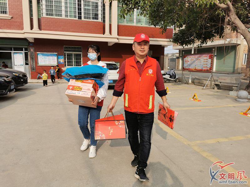 劉志勇(右)帶著志愿者慰問困難戶。(同安區(qū)委文明辦供圖)