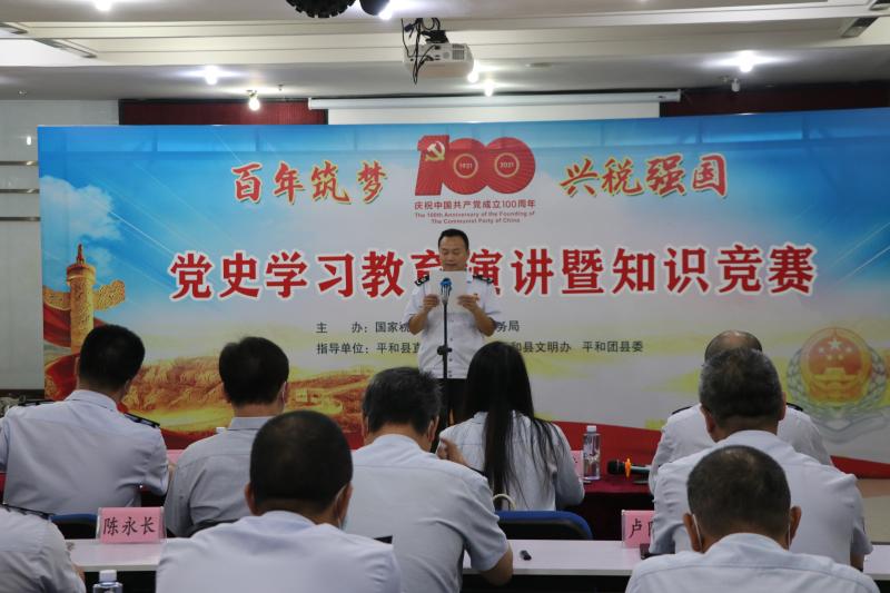 文明風(fēng)6月25日訊(通訊員賴麗珠)為慶祝中國共產(chǎn)黨百年華誕,進(jìn)一步引導(dǎo)全體稅務(wù)干部深入學(xué)習(xí)黨的百年歷史,重溫黨走過的光輝歷程,進(jìn)一步堅(jiān)定理想信念。6月24日,縣局舉辦以“筑夢百年興稅強(qiáng)國”為主題的黨史學(xué)習(xí)教育演講暨知識(shí)競賽活動(dòng)。平和縣直機(jī)關(guān)黨工委、縣文明辦、團(tuán)縣委等領(lǐng)導(dǎo)親臨現(xiàn)場進(jìn)行指導(dǎo)。