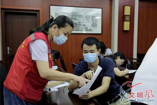 現(xiàn)場,獻血者要先經(jīng)過填表-體檢-血液初篩-信息錄入這一流程,且只有檢驗合格的獻血者才能正式獻血。獻血者在愛心志愿者的指引下,有條不紊地完成獻血登記、體檢、檢驗等流程。