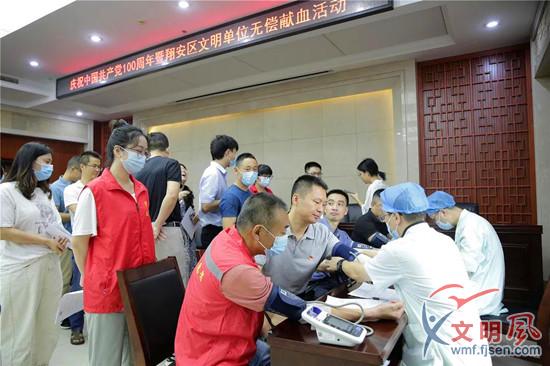 文明風(fēng)6月29日訊(夏菁 童心悅)為進一步弘揚人道主義精神,促進精神文明建設(shè),結(jié)合中國共產(chǎn)黨建黨100周年紀(jì)念活動和第十八個“世界獻血者日”活動,6月28日,廈門市翔安區(qū)委文明辦、區(qū)直機關(guān)黨工委、區(qū)紅十字會聯(lián)合組織“慶祝中國共產(chǎn)黨100周年暨翔安區(qū)文明單位無償獻血活動”。此次活動得到了區(qū)直機關(guān)、文明單位干部職工和廣大志愿者的熱烈響應(yīng)。