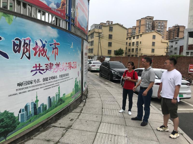 柘榮縣文明辦一行查看文明縣城宣傳廣告(王彬燕 供圖)