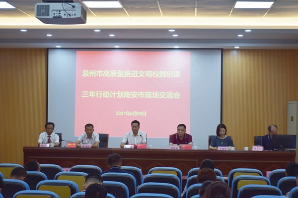 泉州市高質(zhì)量推進文明校園創(chuàng)建三年行動計劃南安市現(xiàn)場交流會。