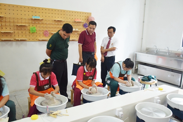 參會人員參觀學(xué)校陶藝吧