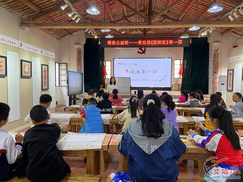 走進(jìn)繁星基地檀樾書(shū)院內(nèi),幾十張嶄新的木制桌椅整齊擺放,這是村里的孩子上藝術(shù)課的地方?!拔覀兠恐芰紩?huì)為黃厝村的孩子帶來(lái)一堂免費(fèi)藝術(shù)課,主要是國(guó)畫(huà)、繪畫(huà)、彩鉛、書(shū)法等課程。”繁星基地負(fù)責(zé)人董毓毓表示,2018年3月村里啟動(dòng)繁星公益泥土計(jì)劃,到現(xiàn)在仍在持續(xù)中。
