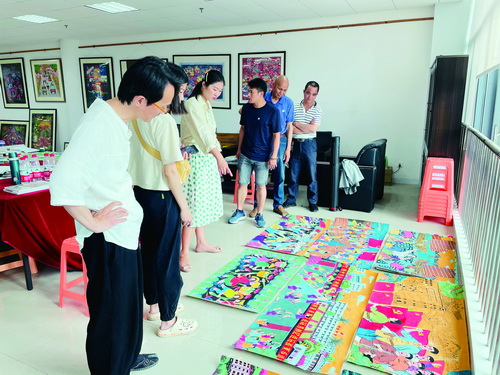 農(nóng)民畫長卷創(chuàng)作。 (柯登科 攝)