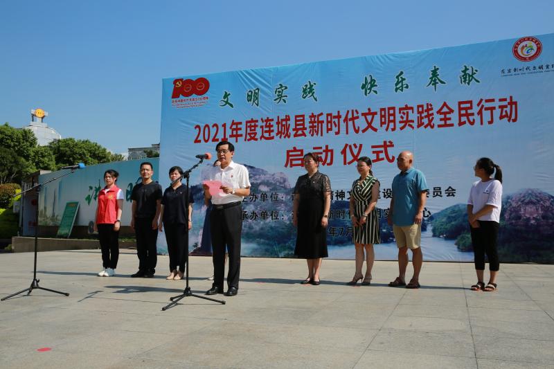 文明風7月8日訊 7月6日上午,由連城縣委文明辦主辦的“文明實踐 快樂奉獻”2021年度連城縣新時代文明實踐全民行動啟動儀式在城區(qū)街心公園舉辦。