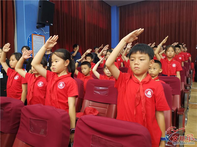 少先隊(duì)員們現(xiàn)場(chǎng)行隊(duì)禮。記者 盧超穎 攝