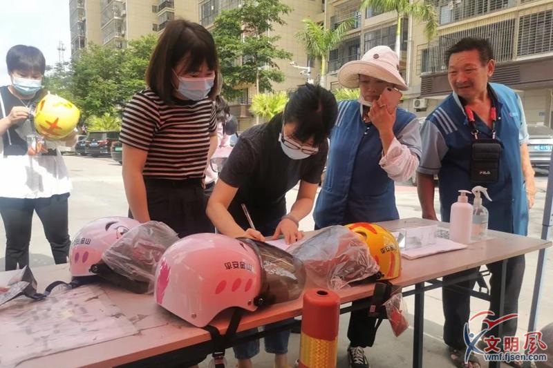 文明風(fēng)7月20日訊(通訊員 張舒黎)守護(hù)安全,幸“盔”有你,正確佩戴安全頭盔,能夠降低交通事故死亡風(fēng)險(xiǎn)。7月16日,廈門市湖里區(qū)金山街道聯(lián)合金山交警中隊(duì)、金山社區(qū)在金卿家園開展“愛心頭盔”共享驛站啟動儀式及宣傳活動,旨在落實(shí)“一盔一帶”安全守護(hù)行動,讓文明出行的理念深入人心。