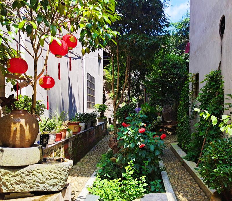 這座“美麗庭院”的主人是許仕斌。2019年,他退休后回到傍洋老家居住,利用閑暇時(shí)間就地取材,巧妙利用廢舊物,建起花園式小庭院。前不久,他又對(duì)庭院進(jìn)行了提升改造。走進(jìn)他的庭院,只見鮮花綠植錯(cuò)落有致,景觀魚池別有巧思,還有藤椅可供休憩,令人感到愜意。在許仕斌的帶動(dòng)下,傍洋不少村民也紛紛加入美化家園的隊(duì)伍中,將自家庭院收拾得干凈整潔。