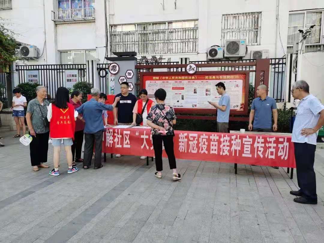 志愿者助力雙溪街道中解社區(qū)疫苗接種宣傳工作(圖:林煒)