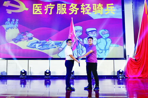 市第三醫(yī)院醫(yī)療服務(wù)輕騎兵志愿服務(wù)隊(duì)授旗。 夏海濱 攝