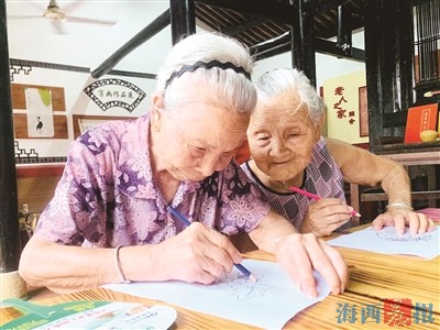 蓮塘村的老人在“老人之家”畫(huà)畫(huà)。(黃小梅 供圖)