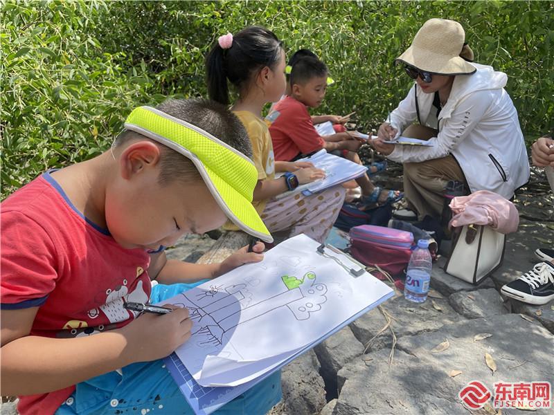 在繪畫老師的指導下,小志愿者們仔細觀察并筆繪紅樹林生態(tài)帶,創(chuàng)作紅樹林畫作以供后續(xù)進行紅樹林生態(tài)宣傳,讓更多人認識紅樹、保護紅樹。