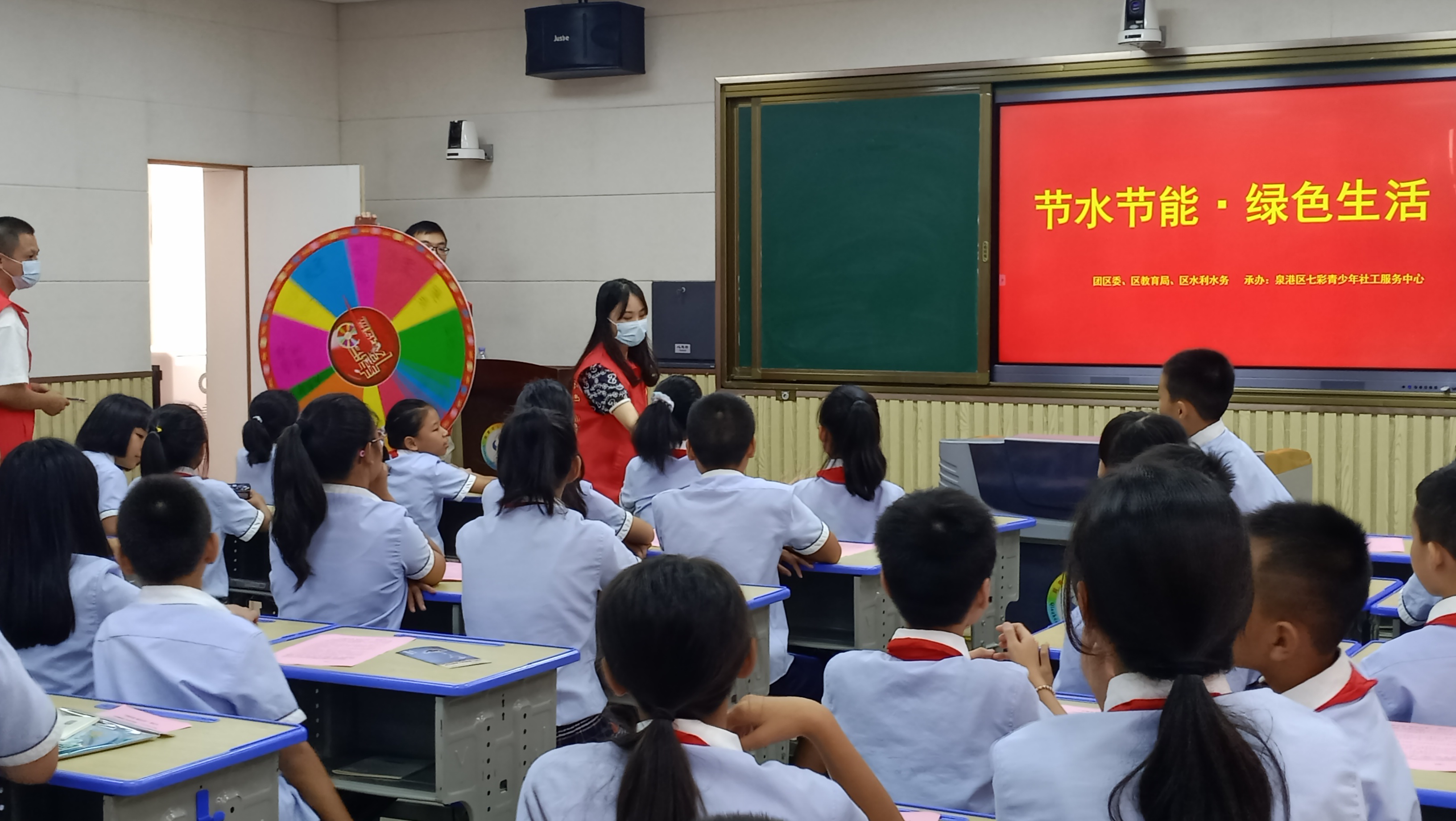宣講活動以“為什么節(jié)水”作為開頭,引起學生們的興趣,通過“地球上的水”“人體中的水”“植物中的水”“節(jié)水小妙招”幾個部分來為學生們講節(jié)水節(jié)能的重要性,以趣味問答、轉(zhuǎn)盤抽獎等形式加強與學生們的互動,增強知識點的印象。通過播放的“河水是怎么變成自來水的”動畫百科短視頻,深深的吸引住同學們的目光,讓同學們知道了自來水的由來。活動最后在同學們誦讀“節(jié)水節(jié)能承諾書”聲中落下帷幕。