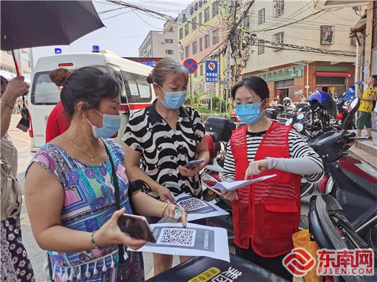 馬鑾社區(qū)新時(shí)代文明實(shí)踐站社工向村民開(kāi)展核酸檢測(cè)掃碼登記答疑工作。孫莉 攝