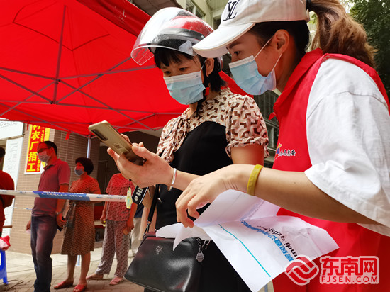 檢測現(xiàn)場的秩序井然,除了群眾的理解支持外,也離不開志愿者們的熱心幫助。在各個核酸檢測點(diǎn),處處可見他們穿著紅馬甲、服務(wù)群眾的身影。“我們主要是負(fù)責(zé)維持現(xiàn)場秩序,引導(dǎo)居民按照流程進(jìn)行采集,同時我們事先經(jīng)過培訓(xùn),隨時可以解答居民們的疑問?!被莅部h薯花文明志愿服務(wù)總隊隊長陳添志表示。