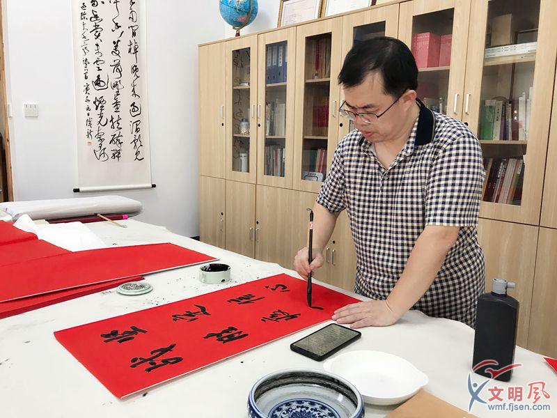 9月18日上午,同安書畫院常務(wù)副院長(zhǎng)李偉新接到區(qū)文聯(lián)的倡議。很快,他開始召集書法志愿者,派發(fā)紙墨,明確書寫規(guī)范、書寫范本,而后,提筆書寫。