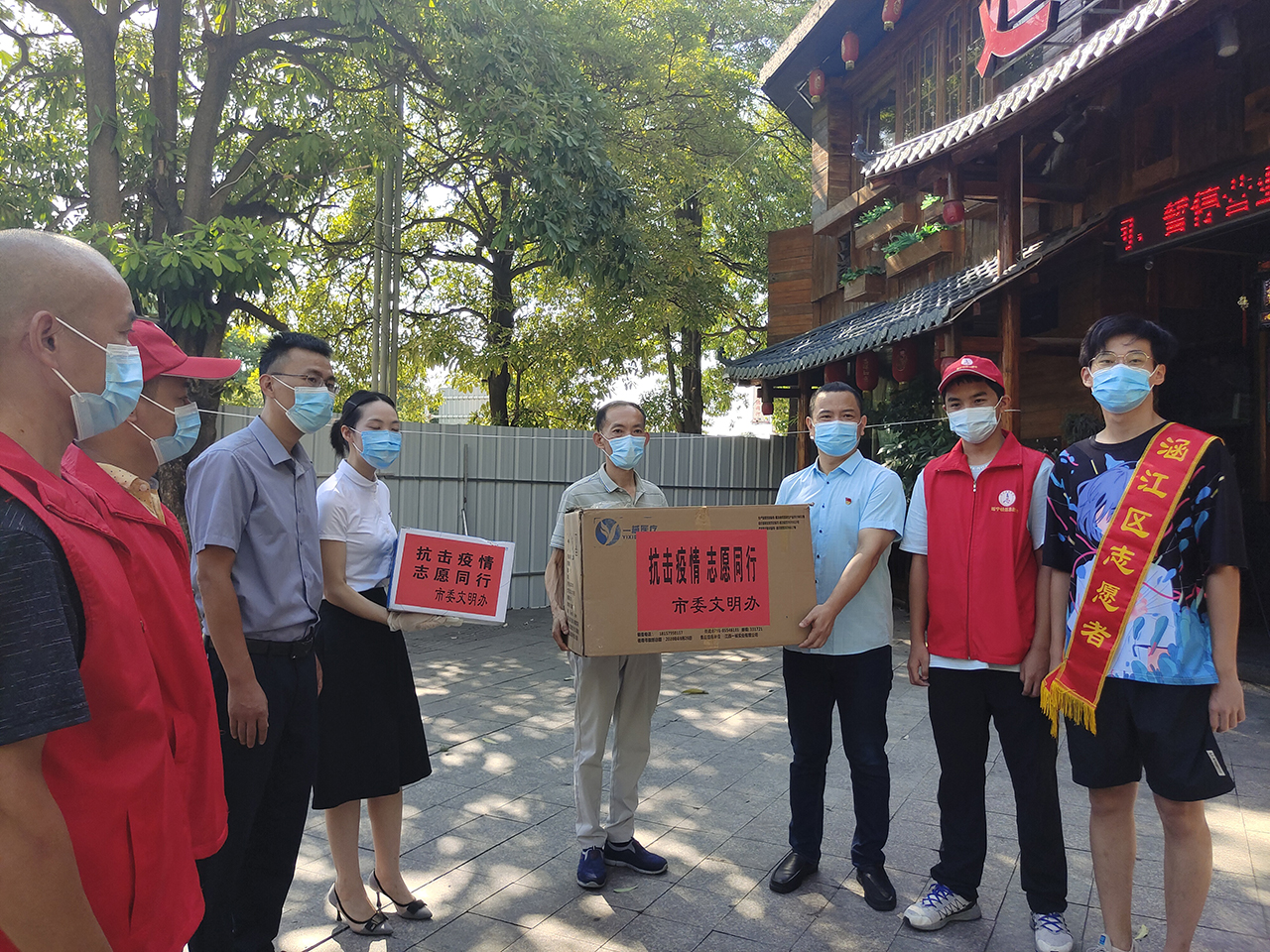向志愿者送上醫(yī)用口罩、醫(yī)用手套和防護(hù)面罩等防疫物資 涵江區(qū)委文明辦供圖