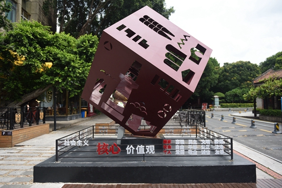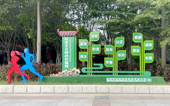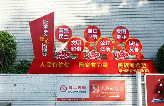 泉州市青少年宮內(nèi)泉州音樂廳廣場上的社會主義核心價值觀景觀小品 。