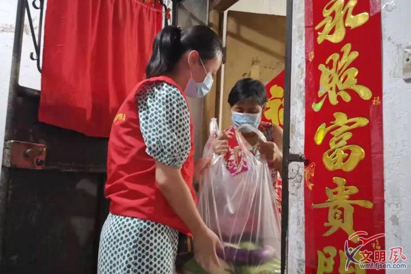 志愿者為老人送上節(jié)日的問候。(同安區(qū)委文明辦供圖)