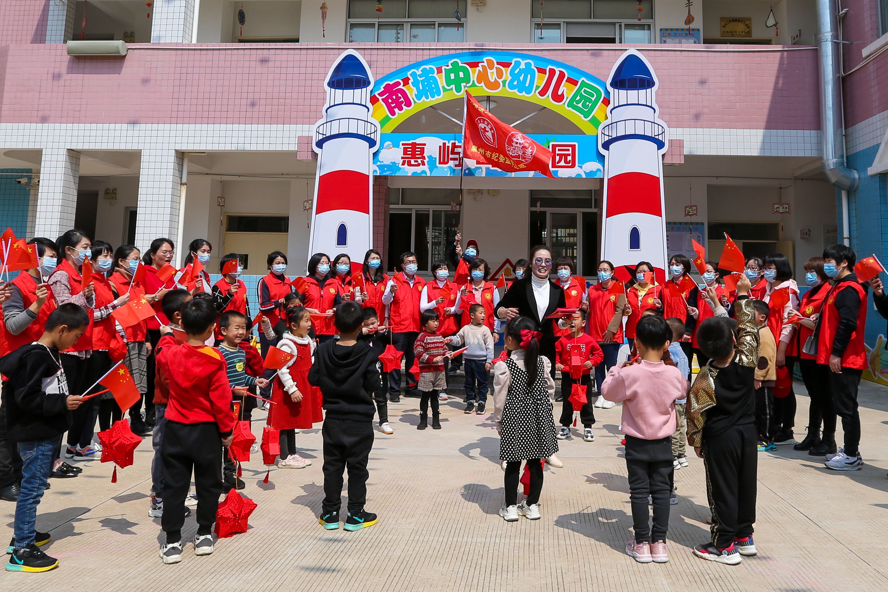 “三級聯(lián)建”黨員志愿者教海島兒童唱紅歌(泉港區(qū)南埔鎮(zhèn)供圖 章慶煌、蔡珍妮攝 )