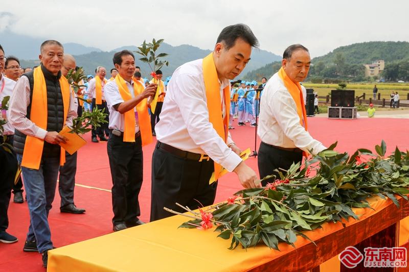 參加2021朱子祭祀典禮祭祀人員向朱熹塑像敬獻(xiàn)桂枝 邱汝泉 攝