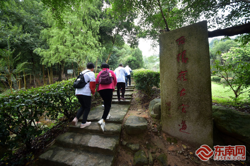 圖為志愿者徒步經(jīng)過白鶴嶺古官道碑。池惟強 攝